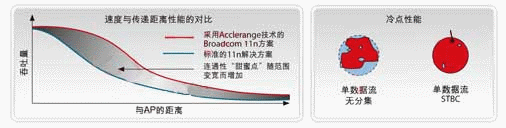 為了向聯(lián)網(wǎng)家庭提供強大的無線骨干網(wǎng),Broadcom利用Acclerange技術對其新的802.11n路由器平臺作了全面優(yōu)化,其軟硬件增強性能確保了家庭中任一角落的更健壯的無線覆蓋。Accelerange軟件架構還支持時空分組編碼(STBC)技術,采用了獨特的2×2天線結構,從而能以盡可能低的成本提供更好的性能。它的非線性均衡器只需要兩個,而65nm工藝的集成更是有助于進一步降低成本。另外,基于Accelerange的解決方案針對視頻分發(fā)和其他多媒體應用作了優(yōu)化,其內置算法可以檢測多媒體數(shù)據(jù)流,并通過動態(tài)調整來實現(xiàn)最優(yōu)性能。經(jīng)認證的動態(tài)頻率選擇(DFS)技術還可以在5GHz頻段內增加15個信道。