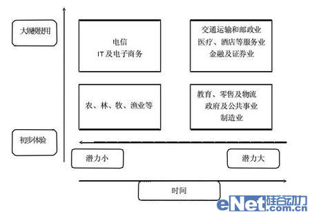 象限4--代表位于該象限的行業(yè)已經開始大規(guī)模使用通信產品,同時還有很大的市場潛力,該類行業(yè)對通信要求很大,我們預測供應商在此領域會將得到很大的利潤
