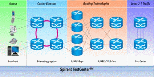 隨著語(yǔ)音、數(shù)據(jù)、視頻的融合,以及Everything over IP的發(fā)展,日趨復(fù)雜的業(yè)務(wù)流量及電信級(jí)別的營(yíng)運(yùn)要求給承載設(shè)備帶來(lái)更加嚴(yán)格的挑戰(zhàn)。豐富的功能應(yīng)用、高密度/高帶寬端口的支持、高性能轉(zhuǎn)發(fā)要求、全面的寬帶接入系統(tǒng)、靈活的業(yè)務(wù)應(yīng)用及流量管理、完備的安全防護(hù)、周全的穩(wěn)定運(yùn)營(yíng)及容錯(cuò)備份系統(tǒng)、良好的可擴(kuò)展性等,設(shè)備廠商交付使用的不僅僅是單一的設(shè)備,而是一攬子從承載到應(yīng)用的綜合系統(tǒng)。部署實(shí)施前的測(cè)試也變得相當(dāng)重要,能否有一種完整的測(cè)試解決方案,以幫助設(shè)備制造廠商完全應(yīng)用目前的所有功能測(cè)試呢?