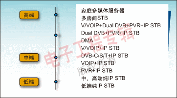 標(biāo)清(SD)對于大眾市場來說是一個(gè)合乎邏輯的選擇。ODM廠商不管選用哪種操作系統(tǒng)(Windows CE或Linux)都能與NXP公司的IP-STB平臺相結(jié)合,為本地市場生產(chǎn)所期望的產(chǎn)品。