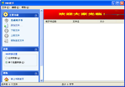 也有不少用戶(hù)利用UMD轉(zhuǎn)換工具將電子書(shū)轉(zhuǎn)換成UMD格式,但市場(chǎng)上的UMD轉(zhuǎn)換工具都不支持批量轉(zhuǎn)換功能,比如筆者最近想好好復(fù)習(xí)下英語(yǔ)。想將大量的英語(yǔ)資料制成手機(jī)電子書(shū),在上下班坐車(chē)的時(shí)候?qū)W習(xí),使用普通的轉(zhuǎn)換器就會(huì)耗費(fèi)許多時(shí)間。經(jīng)過(guò)筆者不懈的上網(wǎng)挖掘,終于發(fā)現(xiàn)了一個(gè)好東東。掌上書(shū)院推出了首款UMD手機(jī)電子書(shū)批量制作工具UMD舵手1.0beta,據(jù)介紹,UMD舵手是目前唯一款UMD手機(jī)電子書(shū)批量制作工具,最多可一次性同時(shí)轉(zhuǎn)換300本以上的圖書(shū),為喜愛(ài)自己動(dòng)手制作手機(jī)電子書(shū)的用戶(hù)提供了極大的方便,DIY個(gè)屬于自己的手機(jī)圖書(shū)館不再是夢(mèng)想了。