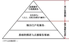 擁有4億多注冊(cè)用戶的騰訊,占有中國(guó)即時(shí)通信80%的市場(chǎng)份額,互聯(lián)網(wǎng)行業(yè)贏家通吃的定律顯露無疑,騰訊在海量用戶群基礎(chǔ)上開發(fā)的各種業(yè)務(wù)都在行業(yè)排名前列。當(dāng)電視服務(wù)的規(guī)模用戶群得以穩(wěn)固,基于用戶規(guī)模之上的多元化服務(wù)集成成為可能,對(duì)電視服務(wù)形成高度依賴的用戶群具備了價(jià)值挖掘的條件。人人交互、人機(jī)交互依托基礎(chǔ)的電視分眾門戶化應(yīng)用,形成了最初的用戶使用習(xí)慣;依托電視分眾門戶化集成的積累,建立用戶識(shí)別、用戶分析、收視分析、用戶數(shù)據(jù)交換的技術(shù)體系,用以支撐未來多元化娛樂與服務(wù)的開發(fā)。基于IPTV的交互能力,依托電視終端的易用性與舒適性,用戶價(jià)值、終端價(jià)值被充分挖掘,電視服務(wù)開始對(duì)其他媒介形式(含互聯(lián)網(wǎng))的用戶形成吸納。圍繞交互、商務(wù)需求的電子貨幣體系逐漸完善,電視進(jìn)入可有效運(yùn)營(yíng)、可便捷支付的良性的產(chǎn)業(yè)循環(huán),IPTV多元化業(yè)務(wù)之門打開。