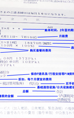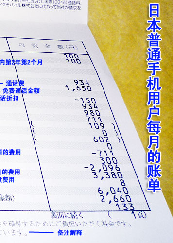 到底在購(gòu)買各種套餐之后,用戶每個(gè)月使用多少錢呢?下面是一份普通的日本手機(jī)用戶每個(gè)月收到的賬單,通過這份賬單我們清晰看出3G資費(fèi)的構(gòu)成。在這里,我們清晰看到?jīng)]有漫游費(fèi),如果沒有折扣,該用戶至少需要付近3萬日元的費(fèi)用,實(shí)際上,最后用戶需要繳納的費(fèi)用是6064日元,其中還包含了購(gòu)買新款手機(jī)3380日元的費(fèi)用,實(shí)際上產(chǎn)生的話費(fèi)是2660日元。