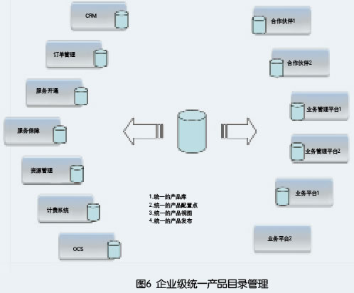 其次建立統(tǒng)一產(chǎn)品目錄,先完成對CRM、計費(fèi)系統(tǒng)的產(chǎn)品目錄統(tǒng)一管理,實現(xiàn)新產(chǎn)品的單點配置、統(tǒng)一發(fā)布。