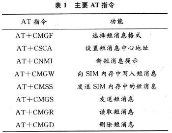AT即Attention,AT指令集是從終端設(shè)備(Ter-minal Equipment,TE)或數(shù)據(jù)終端設(shè)備(Data Terminal Equipment,DTE)向終端適配器(Terminal Adapter, TA)或數(shù)據(jù)電路終端設(shè)備(Data Circuit Terminal E-quipment,DCE)發(fā)送的。通過TA,TE發(fā)送AT指令來控制移動臺(Mobile Station,MS)的功能,與GSM網(wǎng)絡(luò)業(yè)務(wù)進行交互。用戶可以通過AT指令進行呼叫、短信、電話本、數(shù)據(jù)業(yè)務(wù)、傳真等方面的控制。主要AT指令如表1所示。