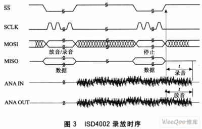 器件便從00地址開始錄音,一直到出現(xiàn)OVF(存儲(chǔ)器末尾)時(shí),錄音停止。其工作時(shí)序如圖3所示。
