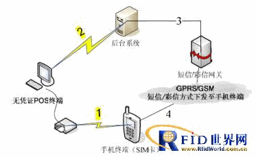 第3步:后臺系統(tǒng)將用戶刷卡信息處理生成憑證信息之后將此憑證信息發(fā)送給短信/彩信網(wǎng)關(guān)(此憑證信息形式可以為經(jīng)過加密了的短信或彩信,也可以為二維碼等可以驗證的形式)。