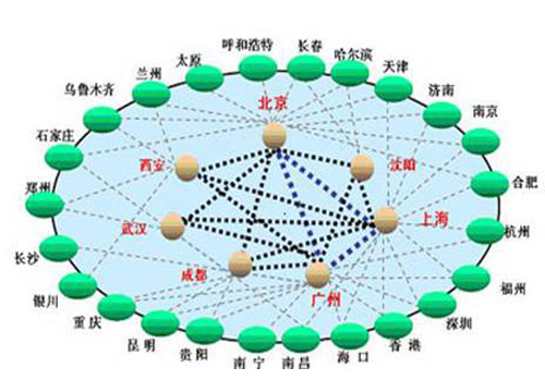 網(wǎng)絡扁平化概念就適時提出來了,F(xiàn)在,網(wǎng)絡扁平化已經(jīng)是運營商網(wǎng)絡建設的主要指導思想了。特別是中國聯(lián)通,由于歷史原因造成的骨干網(wǎng)節(jié)點并不夠多導致其南北方網(wǎng)絡品質(zhì)存在一定差異。而扁平化后能很好的解決此問題。下圖為網(wǎng)絡扁平化示意圖。
