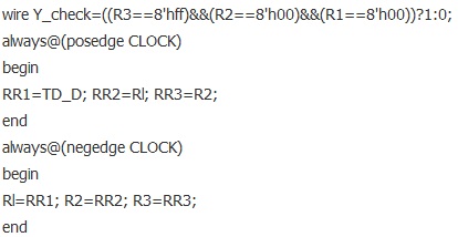 在硬件描述語言中,完成上述過程還是比較簡單的。例如檢測電路,只要描述一個移位寄存器就可以了,具體代碼如下: