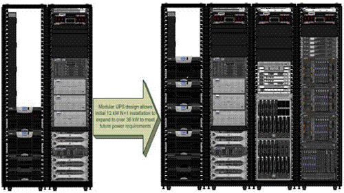 模塊化UPS設(shè)計(jì)允許最初的12kW N+1架構(gòu)設(shè)備擴(kuò)展至36kW以上,以滿(mǎn)足未來(lái)的電源要求。