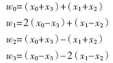 對(duì)于每列變換,需要進(jìn)行8次加法和2次移位運(yùn)算,而行變換則可根據(jù)矩陣轉(zhuǎn)置的性質(zhì)ABT=(BAT)T,將經(jīng)過列變換后的結(jié)果矩陣先進(jìn)行轉(zhuǎn)置,再采用相同的變換形式運(yùn)算。這樣對(duì)4×4點(diǎn)數(shù)據(jù)做一次變換,只需通過8×8次加法和2×8次移位運(yùn)算便可完成。