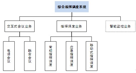 基于融合通信平臺的綜合指揮調(diào)度系統(tǒng)可分為交互式會議業(yè)務(wù)、指揮調(diào)度業(yè)務(wù)和智能監(jiān)控業(yè)務(wù),而交互式會議業(yè)務(wù)分為電話會議和在電話會議基礎(chǔ)上升級的融合會議產(chǎn)品兩種,指揮調(diào)度業(yè)務(wù)分常規(guī)指揮調(diào)度、應(yīng)急指揮調(diào)度和移動式指揮調(diào)度三種。
