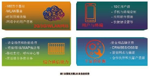 運營商的資金雄厚,品牌顯著,CRM/BSS/OSS等運營支撐系統(tǒng)蘊含豐富的用戶信息,營業(yè)網(wǎng)點密布,合作伙伴眾多,大客戶資源豐富,這些都為開展LBS業(yè)務(wù)提供了良好的資源。