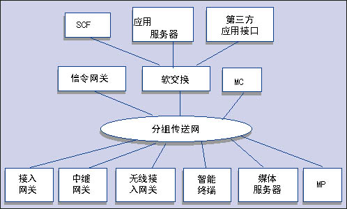接入層包括各種接入網(wǎng)關(guān)、中繼網(wǎng)關(guān)、無線接入網(wǎng)關(guān)、智能終端以及與處理媒體有關(guān)的媒體服務(wù)器和多點(diǎn)處理器(MP)。傳送層包括提供IP包轉(zhuǎn)發(fā)的各種承載網(wǎng)功能實體。控制層是NGN網(wǎng)絡(luò)的核心,主要包括軟交換設(shè)備、信令網(wǎng)關(guān)和多點(diǎn)處理器。業(yè)務(wù)層則主要包括應(yīng)用服務(wù)器、第三方應(yīng)用接口和傳統(tǒng)智能網(wǎng)功能。該業(yè)務(wù)層通過開放的業(yè)務(wù)層接口向用戶提供傳統(tǒng)智能網(wǎng)業(yè)務(wù)、多樣化的第三方業(yè)務(wù)和增值業(yè)務(wù)。