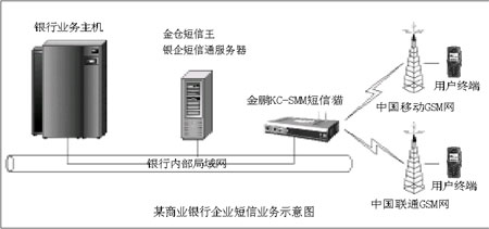 2004年7月,某地級市商業(yè)銀行采用了金鵬KC-SMM短信貓和“金倉短信王銀企短信通解決方案”軟件搭建了企業(yè)級的短信服務(wù)體系。鑒于業(yè)務(wù)量并非很大,所以盡管整個(gè)商業(yè)銀行有近三百個(gè)辦公網(wǎng)點(diǎn),在設(shè)備上該商業(yè)銀行仍然只采用一套軟硬產(chǎn)品!敖瘗i的短信平臺產(chǎn)品目前在北方鋪開的時(shí)間并不長,所以在價(jià)格上有一定的傾斜,我們商業(yè)銀行購買的產(chǎn)品,價(jià)格比較便宜!痹撋虡I(yè)銀行信息部某負(fù)責(zé)人說。