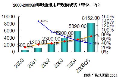 2000-2005第三季度即時通訊用戶規(guī)模現(xiàn)狀圖
