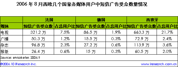 8月西班牙21.7%電視用戶是短信廣告受眾