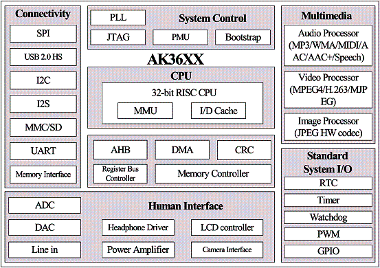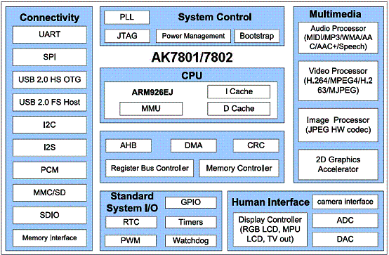 AK36系列PND方案的硬件架構(gòu)由AK36系列外接GPS模塊或芯片組組成,搭配MLC Nandflash海量存儲(chǔ)。軟件方面采用安凱自主研發(fā)的輕量級(jí)操作系統(tǒng)實(shí)現(xiàn)系統(tǒng)和多媒體等主要功能,內(nèi)置凱立德V3.0的導(dǎo)航版本。據(jù)安凱稱,該方案具有系統(tǒng)成本低、加工簡單、低功耗、平臺(tái)穩(wěn)定且開放性好、卓越的搜星性能等優(yōu)勢。