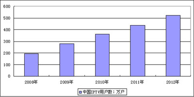 圖3 2008年-2012年中國(guó)IPTV用戶數(shù)