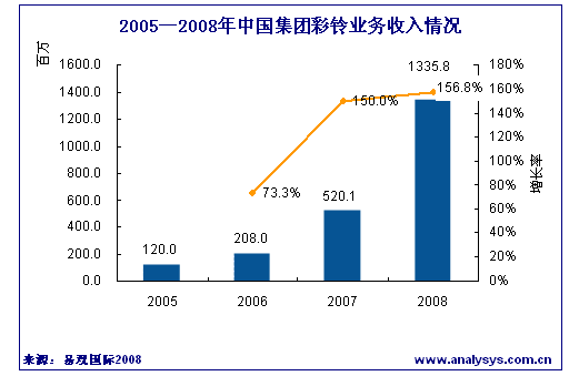 中國集團彩鈴業(yè)務(wù)2008年市場收益將達(dá)13.6億元