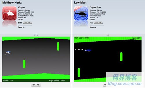 iCopter ,那么你也會(huì)喜歡免費(fèi)的 Copter ! 甚至還有與之對(duì)應(yīng)的另一種情況,開(kāi)發(fā)者抄襲一個(gè)免費(fèi)應(yīng)用,然后把它做成付費(fèi)版——
