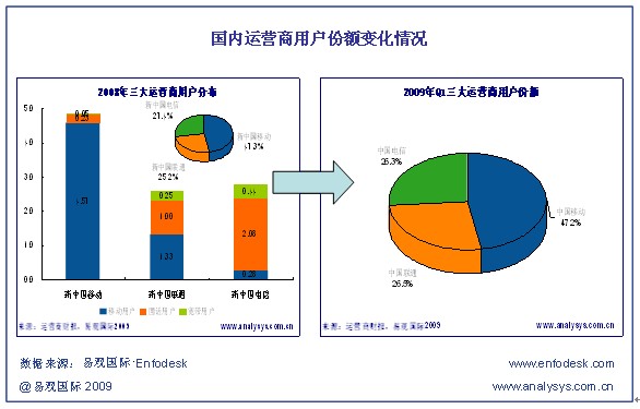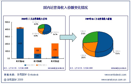 作為2008年度電信業(yè)內(nèi)最大的兩件大事,重組和3G牌照的發(fā)放不僅拉開了全業(yè)務(wù)競爭的序幕,而且為國內(nèi)電信市場的競爭注入了新的活力,一方面提供了讓電信業(yè)競爭逐漸趨于平衡的發(fā)展契機,從另一方面也同時帶來了大量的消費需求。