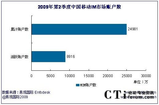 2009年第2季度中國移動IM市場活躍賬戶數(shù)達(dá)8916萬