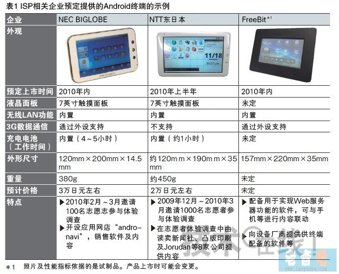 有類似舉措的并非只有NEC BIGLOBE一家。以ISP相關(guān)企業(yè)為中心,通信運營商涉足Android終端業(yè)務(wù)的行動在2010年將不斷出現(xiàn)(表1)。