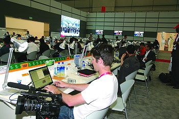 世博的主新聞中心一開門便受到媒體的“熱捧”。中國電信的后臺信息系統(tǒng)顯示,世博主新聞中心的數(shù)據(jù)量一直居高不下,因為記者正忙著用桌面上的100M有線寬帶高速上網(wǎng)、收發(fā)稿件、傳送采訪的視頻。在世博主新聞中心一樓記者工作大廳,想在300個坐席里找個空位可不是容易的事情。