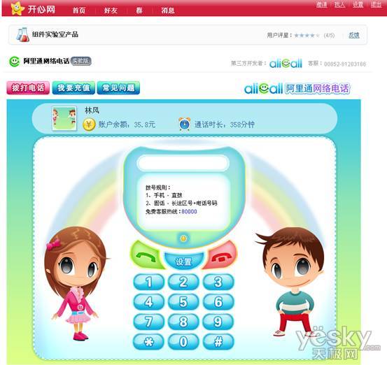 近日,阿里通網(wǎng)絡電話與國內(nèi)著名社交網(wǎng)站開心網(wǎng)合作,推出了定位于年輕族群,專為SNS網(wǎng)站量身定做的flash版網(wǎng)絡電話。開心網(wǎng)用戶只需在組件實驗室中添加阿里通flash網(wǎng)絡電話,無須注冊和安裝任何插件,即可直接在開心網(wǎng)網(wǎng)頁上撥打全球任意的手機和固話。據(jù)悉,為了讓更多的用戶能體驗到flash網(wǎng)絡電話的便利,只要開心網(wǎng)內(nèi)的好友達到5人,添加組件成功后都可獲贈一定的免費通話時長。