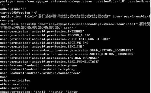 Jacky舉例,安智網(wǎng)的一款應用軟件名為屏幕水珠,在2010年7月份聯(lián)系原作者進行的漢化,由于效果不錯,一些廠商進行修改后,在代碼中加了收取和發(fā)送短信以及讀取和寫入書簽的權限。