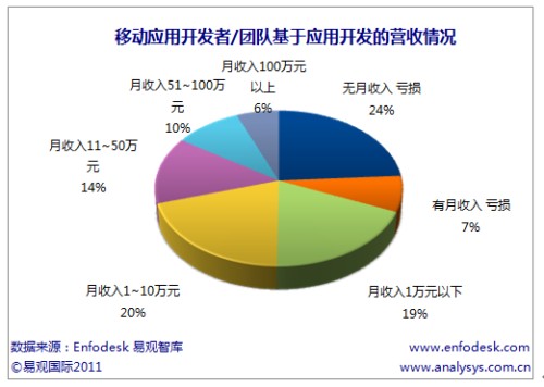 易觀國際(Analysys International)分析認(rèn)為應(yīng)用開發(fā)者難以獲取盈利分成的主要原因在于用戶對應(yīng)用本身沒有付費(fèi)下載習(xí)慣,應(yīng)用商店缺少對應(yīng)用的推廣,但應(yīng)用開發(fā)者難以盈利也和移動應(yīng)用同質(zhì)化嚴(yán)重,難以被用戶認(rèn)可本身強(qiáng)相關(guān)。