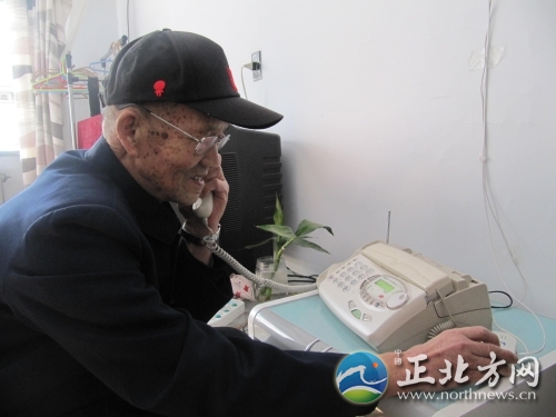 圖:趙鳳臣老人正在使用一鍵式居家養(yǎng)老智能呼叫器