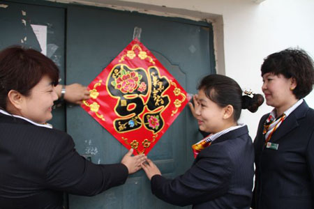 “阿姨,春節(jié)快到了,我們來看看您,前兩天已經(jīng)幫您把電充上了,這次給您帶了個手電,用著它以后到地下室可以照個亮。”隊長阿依古麗向丁阿姨說明來意,還跟丁阿姨試了試,手電是充電式的,不用換電池,丁阿姨挺高興的。臨走時,阿依古麗還在她家門上貼了個大紅的“!弊郑8@先思倚履昕鞓。