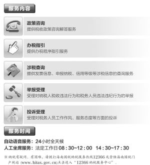 為及時響應(yīng)納稅人的要求維護納稅人的權(quán)益,海南省國家稅務(wù)局于2003年開通12366納稅服務(wù)熱線,2008年5月12日正式成立12366納稅服務(wù)呼叫中心,在省國稅局設(shè)立熱線坐席,專門為納稅人解答涉稅難題。