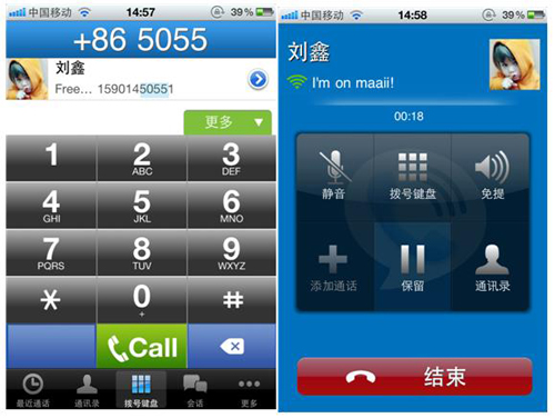 好消息是maaii沒有廣告。maaii也為用戶提供了機(jī)會(huì)獲得免費(fèi)的信用額度打電話給非maaii用戶的朋友,分享maaii信息到Facebook等。最后,我想提一下,與一些網(wǎng)絡(luò)電話軟件不同的是,你可以讓來電在程序中掛起,來電者就會(huì)聽到一個(gè)提示音表示電話正被掛起。而一些網(wǎng)絡(luò)電話的程序只是靜音,所以,除非你警告遠(yuǎn)程來電者你正在把通話掛起,否則他們可能會(huì)認(rèn)為通話已被斷開連接。