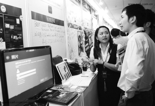 圖為:會(huì)議期間,與會(huì)者正在了解移動(dòng)互聯(lián)技術(shù)。