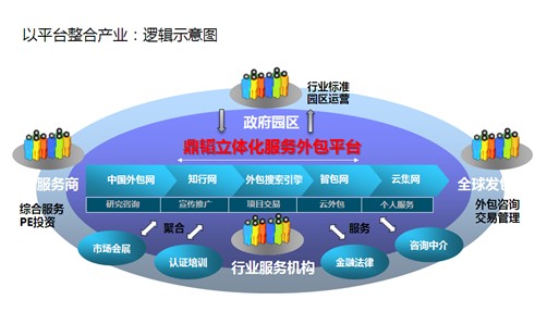 未來,鼎韜將進一步通過交易管理、PE投資和園區(qū)運營自上而下打通中國外包產(chǎn)業(yè)鏈,形成虛實結(jié)合的集成式外包服務(wù)交付體系,形成從平臺到產(chǎn)業(yè)的貫通式商業(yè)模式。并通過5至10年的努力,通過平臺整合我國服務(wù)外包產(chǎn)業(yè),將鼎韜真正打造成為中國服務(wù)外包行業(yè)的平臺化企業(yè),實現(xiàn)鼎韜及產(chǎn)業(yè)的發(fā)展目標(biāo)。