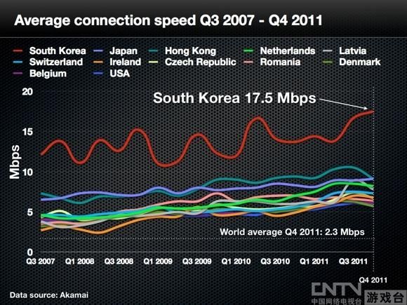 韓國(guó)蟬聯(lián)全球網(wǎng)速之首:峰值速度達(dá)48Mbps