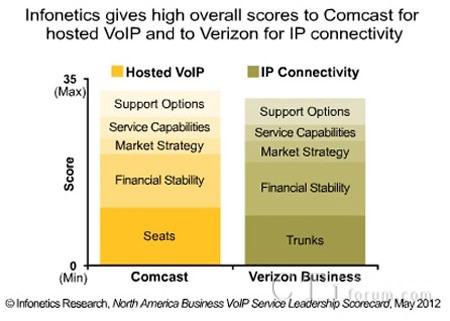 - Comcast公司在托管VoIP服務(wù)方面獲得33分的高分,滿分是35分;West公司、Verizon公司和8x8公司也位列北美頂級(jí)托管VoIP服務(wù)提供商。