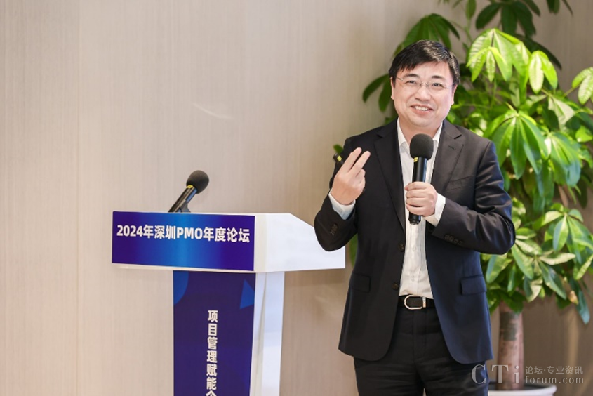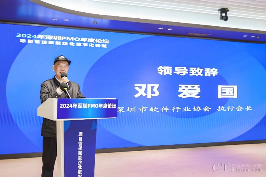 深圳市軟件行業(yè)協(xié)會執(zhí)行會長鄧愛國發(fā)表了熱情洋溢的致辭。他強調(diào)了PMO在數(shù)字化轉型中的關鍵作用,并表達了對與會者們的熱烈歡迎和對論壇的殷切期望。他表示,PMO是項目管理中的重要角色,承擔著承上啟下的作用,對于企業(yè)數(shù)字化轉型的成功至關重要。