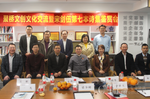 12月28日,聚橋文創(chuàng)文化交流暨宋劍伍第七本詩(shī)集鑒賞會(huì)在廣州天河召開(kāi),本次活動(dòng)為首屆廣東中華優(yōu)秀傳統(tǒng)文化節(jié)系列活動(dòng)之一,由廣東省傳統(tǒng)文化促進(jìn)會(huì)、廣州聚橋文創(chuàng)、廣州市愛(ài)國(guó)為民文化信息傳播有限公司聯(lián)合主辦。廣東省文聯(lián)副秘書(shū)長(zhǎng)、省文藝評(píng)論家協(xié)會(huì)專(zhuān)職副主席梁少鋒,廣東省傳統(tǒng)文化促進(jìn)會(huì)會(huì)長(zhǎng)李世玉,深圳城投集團(tuán)執(zhí)行總裁安菲佳,廣東省傳統(tǒng)文化促進(jìn)會(huì)林啟明、吳彬、一凡、徐波博士,聚橋文創(chuàng)總經(jīng)理、廣東省傳統(tǒng)文化促進(jìn)會(huì)常務(wù)理事鄒橋華,青麥源集團(tuán)董事長(zhǎng)王錫光,商業(yè)戰(zhàn)略分析師、詩(shī)人宋劍伍,廣東金咨貓總經(jīng)理陳錫文等參加本次活動(dòng)。正皓集團(tuán)董事長(zhǎng)潘堅(jiān)發(fā)來(lái)活動(dòng)祝賀信,并表示集團(tuán)將在2024年和廣東省傳統(tǒng)文化促進(jìn)會(huì)及詩(shī)人宋劍伍在品牌文化上有更深度的合作。