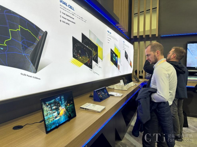 在CES 2024展會上,BOE(京東方)車載業(yè)務仍然是展示的重點,京東方精電攜多款前沿車載顯示產(chǎn)品和智能座艙解決方案重磅亮相。其中,BOE(京東方)全球首發(fā)超大尺寸Oxide智能座艙——45英寸9K氧化物Mini LED車載貫穿屏,借助Oxide產(chǎn)品的高電子遷移率優(yōu)勢實現(xiàn)9K超高分辨率和90Hz超高刷新率,采用玻璃基MLED背光可實現(xiàn)6048超高分區(qū)頂級畫質(zhì)、百萬級超高對比度和1500nits亮度顯示效果,可有效降低20%~30%功耗;此外,BOE(京東方)還聯(lián)合康寧應用了冷彎成型技術,通過在室溫條件下使玻璃彎曲來打造環(huán)抱式曲面設計,以更加綠色環(huán)保的生產(chǎn)工藝引領行業(yè)可持續(xù)發(fā)展。