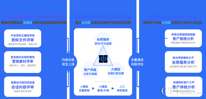 依托多項(xiàng)AI能力融合應(yīng)用,升級后的【多模態(tài)合規(guī)分析平臺】能處理對話數(shù)據(jù)、圖片、音頻和視頻等各種格式的信息,同時(shí)采用大小模型組合式AI合規(guī)檢查機(jī)制,對各個(gè)渠道的客戶互動(dòng)數(shù)據(jù)進(jìn)行聚合分析,實(shí)現(xiàn)大模型構(gòu)成坐席和客戶間全場景多模態(tài)數(shù)據(jù)檢測與分析,以及客戶體驗(yàn)升級。