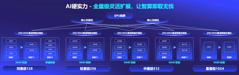 隨著算力成為稀缺資源,寧暢從客戶角度出發(fā),提供了“先享后付”的算力購買方案。目前,寧暢AI算力棧已開放免費試用,現(xiàn)已有50+用戶預約試用。該算力棧是一個包括128臺GPU服務器的千卡級別算力集群,標準化智算中心建設(shè)方案囊括了羽量級128、輕量級256、中量級512、重量級1024四個等級,實現(xiàn)全量級靈活擴展,給了用戶極大選擇空間。用戶可在試用中嘗試不同的業(yè)務組合、方案框架,以便找到“最優(yōu)性價比”的智算中心建設(shè)方案。