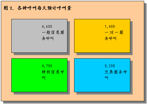 。。為了對(duì)此進(jìn)行說(shuō)明,假設(shè)呼叫中心每天可預(yù)計(jì)處理大約20000個(gè)呼叫。這包含了上文所述的四種呼叫。將有50%以上呼叫中心接到的呼叫是關(guān)于基本服務(wù)請(qǐng)求或性質(zhì)請(qǐng)求。這種預(yù)計(jì)呼叫量不包括預(yù)計(jì)呼叫增長(zhǎng)量,因?yàn)闆]有以往信息不能估計(jì)出增長(zhǎng)情況。而在呼叫中心運(yùn)行初期通常是沒有這些信息的。應(yīng)在執(zhí)行計(jì)劃中進(jìn)行增長(zhǎng)假設(shè)分析,保證系統(tǒng)容量在執(zhí)行服務(wù)市場(chǎng)計(jì)劃后可以應(yīng)付相應(yīng)的增長(zhǎng)水平。