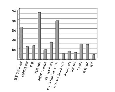在知道CRM的220份樣本中,已實(shí)施CRM的企業(yè)共有27家,占12%。但如和總體樣本相比,它僅占1%。這既說(shuō)明我國(guó)已應(yīng)用CRM的單位非常之少,也預(yù)示著我國(guó)CRM市場(chǎng)潛力巨大。