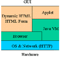 Dynamic HTML可以很好地進行公開信息的發(fā)布,通過HTML Form機制可以從瀏覽器中得到用戶檢索等簡單操作的輸入信息。對于無須身份認(rèn)證、訪問控制的內(nèi)容,在Web Server上可以使用通常的CGI技術(shù)獲取用戶的請求、查詢條件,通過Web Connector還可以使用應(yīng)用服務(wù)其提供的后臺服務(wù),結(jié)果使用HTML方式描述,并可直接回送到客戶端的瀏覽器。如果進一步使用Applet技術(shù),還可以在客戶端實現(xiàn)更為友好的交互式顯示模式。無論是使用DHTML技術(shù)還是HTML Form加上Server方擴展(如CGI, ISAPI, NSAPI, fastCGI和servlet等)。它們適合處理的業(yè)務(wù)都是每次請求/應(yīng)答基本獨立,相互無關(guān)聯(lián)的情況。對于一些更為復(fù)雜的應(yīng)用,要求前后操作具有相關(guān)性,客戶與服務(wù)器端各自保持狀態(tài)的變化且狀態(tài)是相關(guān)的。在這種情形之下,更好的解決方案是將客戶端的所有操作保持在一個Applet中完成,由Applet直接與Web Server交互數(shù)據(jù)來完成請求/應(yīng)答數(shù)據(jù)的交互。