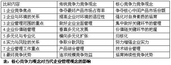 (2)核心競爭力觀念對當代企業(yè)管理理念的影響