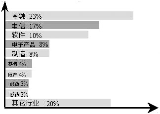 CRM的應用已經(jīng)覆蓋了幾乎所有的行業(yè),典型行業(yè)客戶應用案例和效果為其他企業(yè)采取行動提供了樣板。這些行業(yè)包括銀行、保險、證券、基金、電信、郵政、制造、醫(yī)藥、零售、地產(chǎn)、IT、傳媒、交通和物流等。在整個市場中,主要行業(yè)的占有率情況參見下圖: